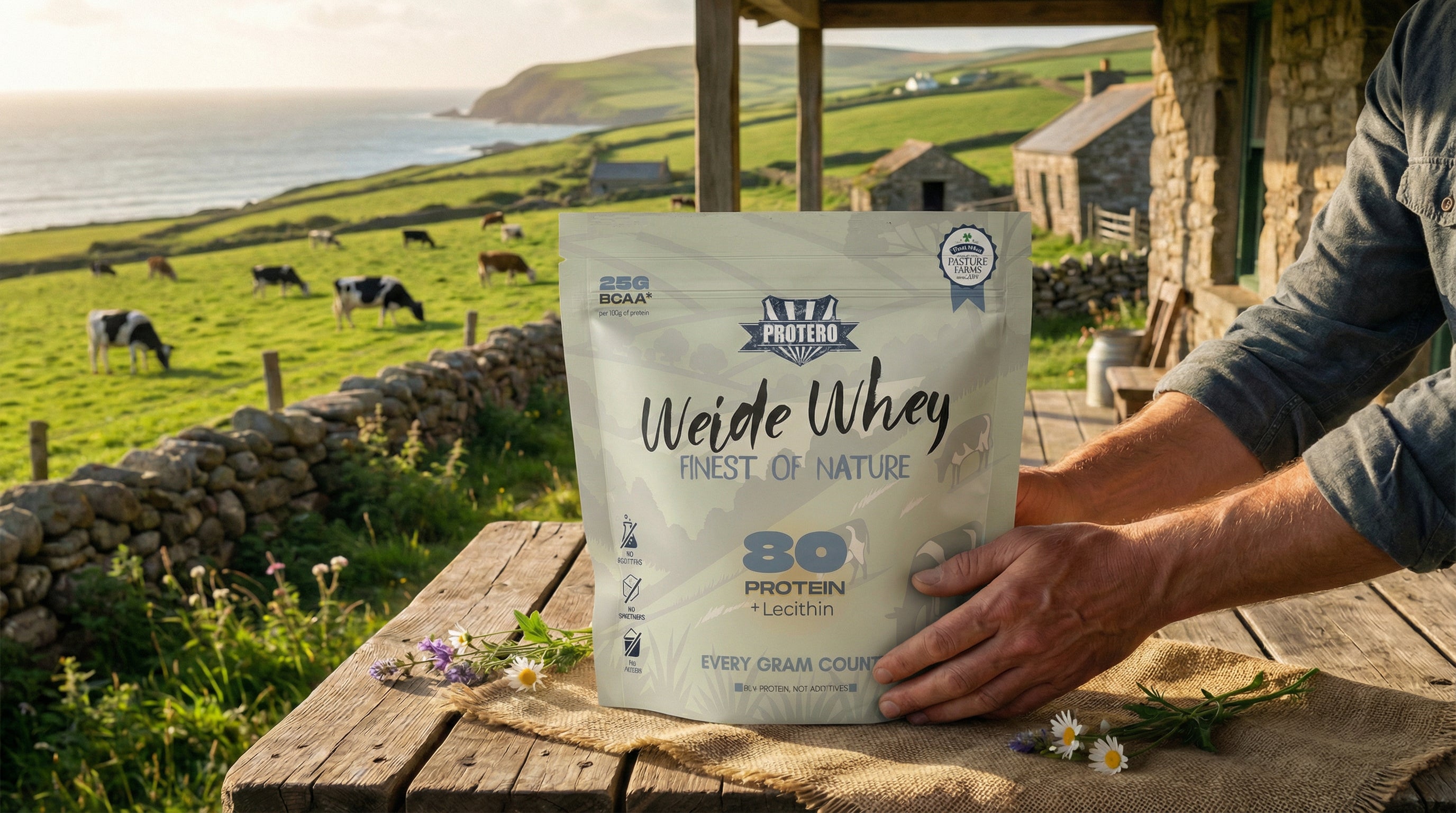 Unsere Rohstoffe kommen ausschließlich von renommierten Herstellern, insbesondere Fonterra (Neuseeland) und Glanbia (Irland), die nach höchsten Standards, mit modernsten Anlagen und vor allem Weidehaltung arbeiten.
